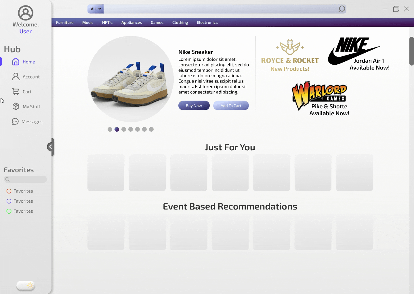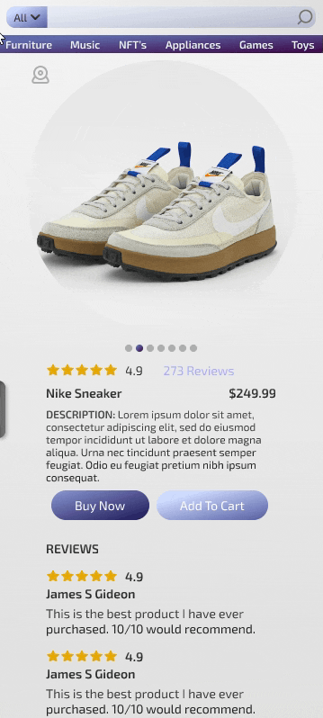 Seamlessly transition from Light Mode to Dark Mode at the click of a button. Giving the user agency over their shopping experience.