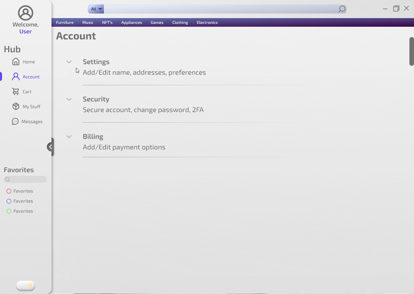 Collapsible menus which save screen real estate and give the user greater control over their Account editing experience.